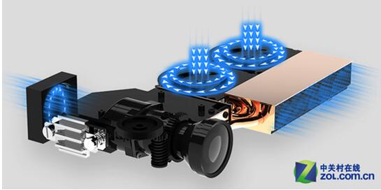 上面提到,引起画面虚焦变形的罪魁祸首是过高的温度,那么,我们可以减少温度的产生吗?答案是可以,但毫无意义。因为微型投影机热量的主要来源是LED光源,而光源的功率大小直接影响到亮度大小,但用牺牲亮度来减少发热量无疑是在舍本逐末。所以除了使用玻璃镜片和全金属镜筒,改善投影机散热系统才是真正解决问题之道。